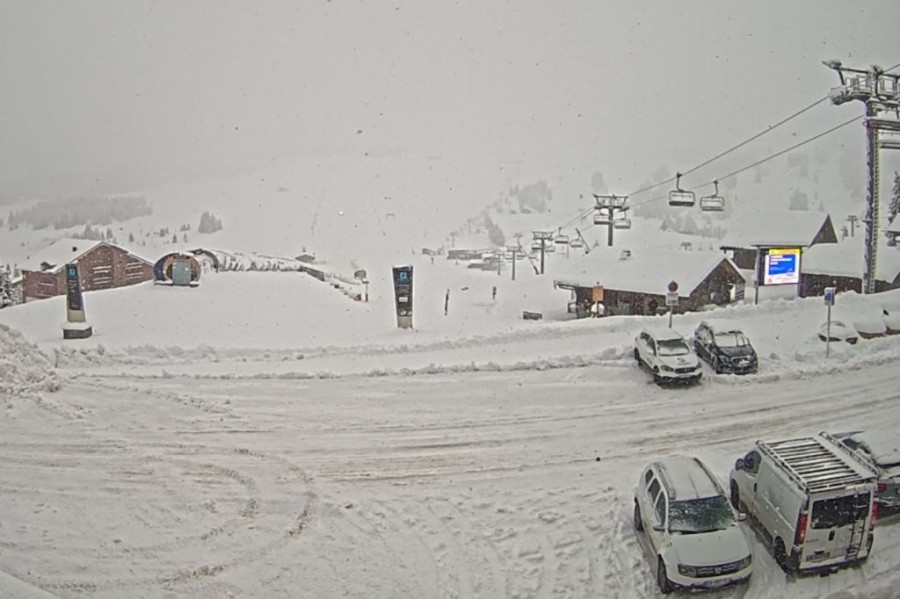 Lots of fresh snow in Les Saisies (1600m), which is just above the rain/snow limit this morning – 24 November 2025 – Photo: lessaisies.com